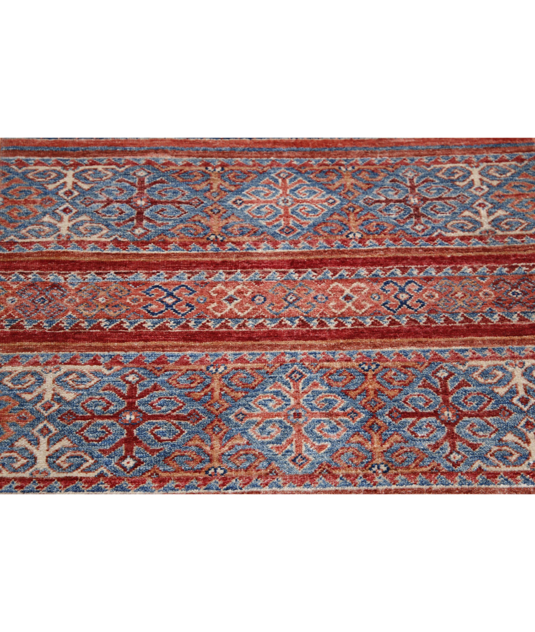 Khurjeen carpets are renowned for their hand-knotted craftsmanship, geometric patterns, and vivid colors. The rugs are often made of wool, and they are frequently knotted with a lot of knots, giving them a soft, opulent feel and enhancing their durability. Khurjeen rugs come in a range of shapes and sizes, but the colors red, blue, and beige are the most typical ones you see. Traditional tribal designs, including stripes, geometric patterns, and animals, are frequently seen in the rugs.